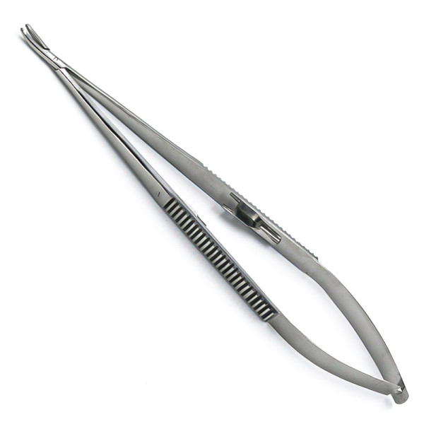 Иглодержатель глазной Кастровьехо, с фиксатором, вертикально-изогнутый, 20 cм