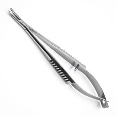 Иглодержатель глазной Кастровьехо, с фиксатором, вертикально-изогнутый, 160 мм