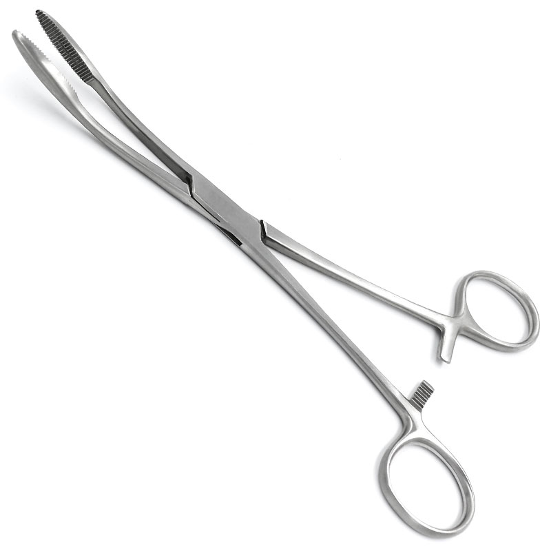 Корнцанг Майера (Gross-Maier), с кремальерой, изогнутый, 200 мм.