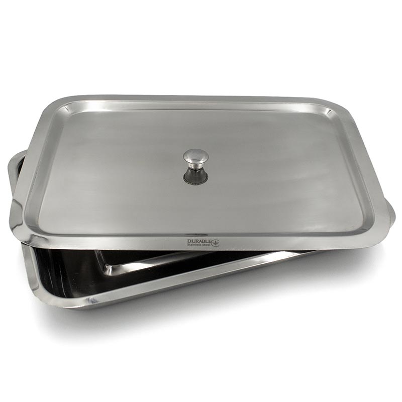 Лоток медицинский прямоугольный с крышкой, нержавеющая сталь.