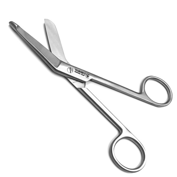 Ножницы медицинские для перевязочного материала, разрезания марлевых и гипсовых повязок, по Листеру, с пуговкой, горизонтально-согнутые, 140 мм.