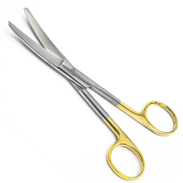 Ножницы Мейо, вертикально-изогнутые, твердосплавная вставка из карбида вольфрама, с покрытием ручек карбидом титана (желтого цвета), плоские лезвия, 170 мм