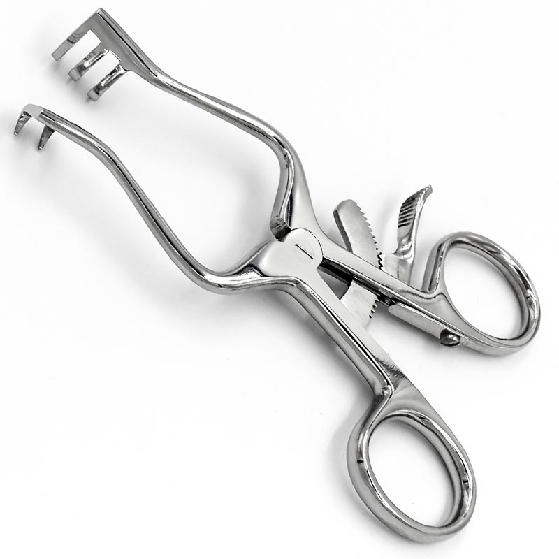 Ретрактор-ранорасширитель самофиксирующийся Вайтланера-Локтайта (Weitlaner-Loktite), типа Лира, 2х3 зуба, с кремальерой, острый, 105 мм