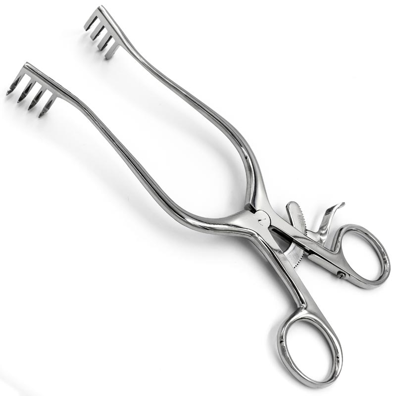 Ретрактор-ранорасширитель самофиксирующийся Адсона (Adson), типа Лира, 4х4 зуба, с кремальерой, острый, 200 мм