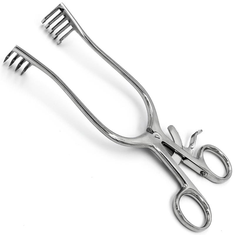Ретрактор-ранорасширитель самофиксирующийся Адсона (Adson), типа Лира, 5х4 зуба, с кремальерой, острый, 200 мм