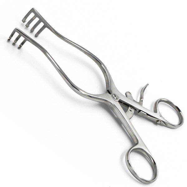 Ретрактор-ранорасширитель самофиксирующий Вайтланера, типа «Лира», 3x4 зуба, с кремальерой, тупой, 165 мм