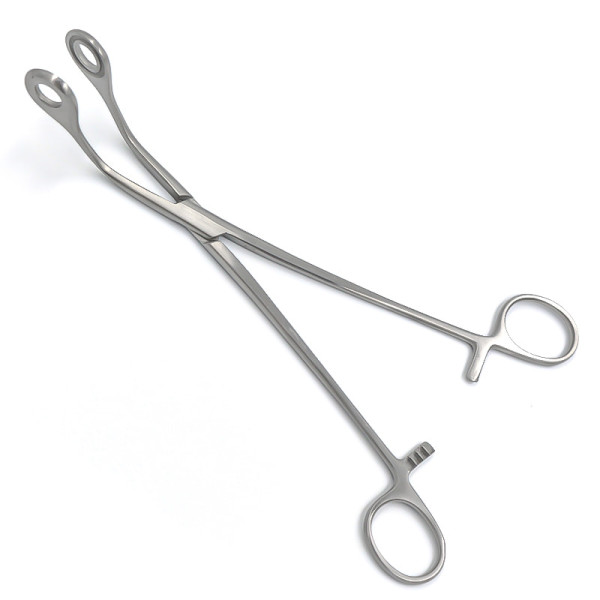 Щипцы геморроидальные по Дуайену, изогнутые, окончатые, с кремальерой, 215 мм