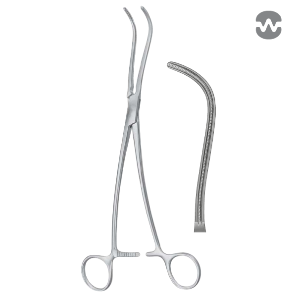 Зажим атравматический ДеБейки-Харкен (DeBakey-Harken), вертикально-изогнутый, бранши 105 мм, 245 мм