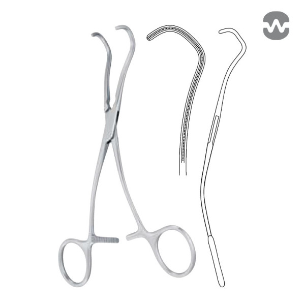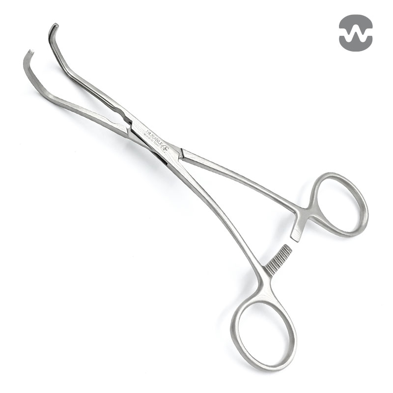 Зажим атравматический ДеБейки-Кули (DeBakey-Cooley), двуугловой, изогнутые рукоятки, бранши 60 мм, 160 мм