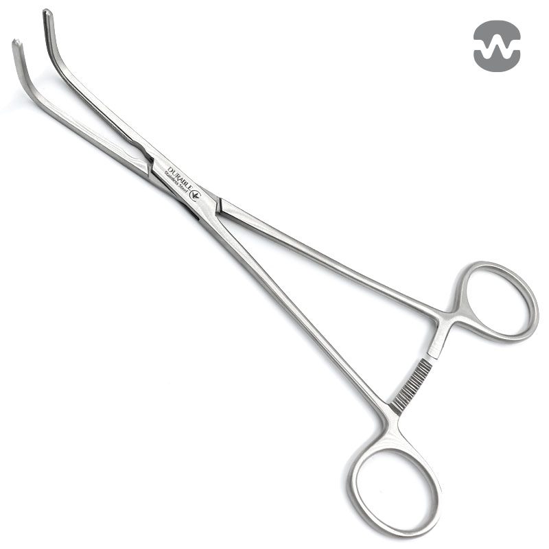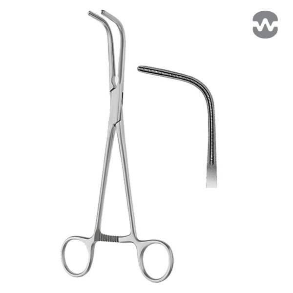Зажим атравматический ДеБейки-МакКуиг-Микстер (DeBakey-McQuigg-Mixter), вертикально-изогнутый, бранши 70 мм, 215 мм