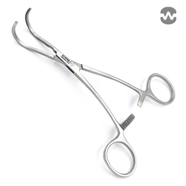 Зажим атравматический ДеБейки (DeBakey), изогнутый по радиусу, изогнутые рукоятки, бранши 60 мм, 155 мм