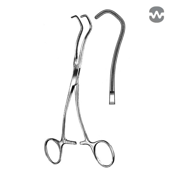 Зажим атравматический Кастанеда (Castaneda), двуугловой, изогнутые рукоятки, бранши 60 мм, 160 мм