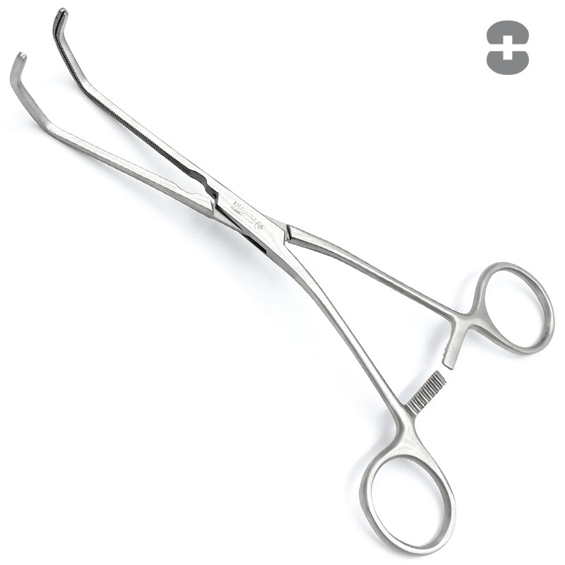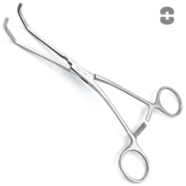 Зажим атравматический Кули (Cooley), двуугловой, изогнутые рукоятки, бранши 72 мм, 175 мм