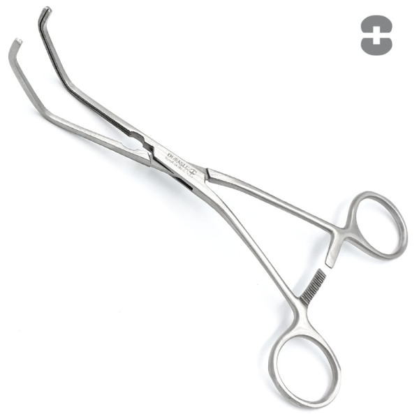 Зажим атравматический Кули (Cooley), двуугловой, изогнутые рукоятки, бранши 76 мм, 180 мм