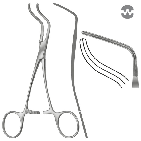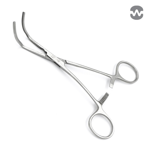 Зажим атравматический Субраманян (Subramanian), двухугловой, изогнутые рукоятки, бранши 53 мм, 155 мм