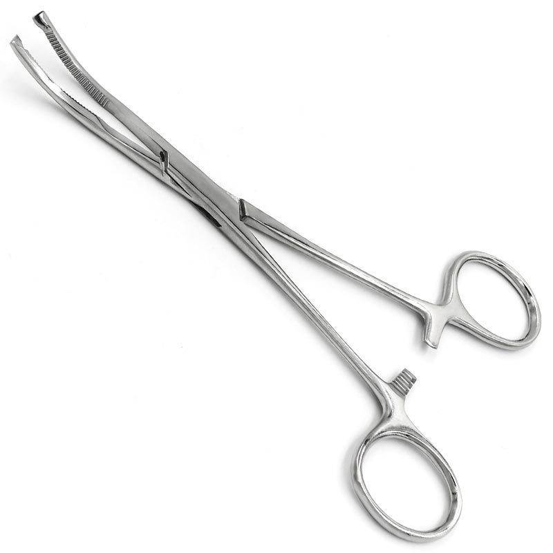 Зажим брюшинный Микулича-Бенголеа, вертикально-изогнутый, с кремальерой, 195 мм