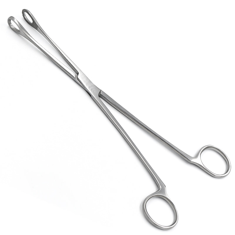 Зажим-щипцы тампонные, окончатые х 12 мм, без кремальеры, прямые, 250 мм, типа абортцанг